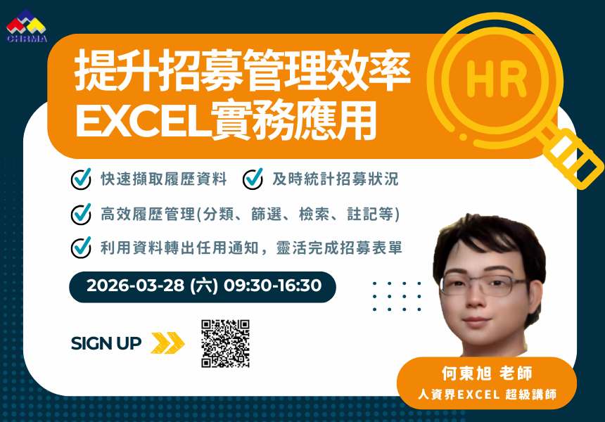 透過本課程,你將獲得可以聰明擷取人力銀行履歷資料的工具,讓招募紀錄管理更輕鬆,再將履歷篩選到任用信函的產出流程簡化。內容包括:從履歷紀錄蒐集、招募進度統計、履歷分類及檢索、特殊名單管理、動態建立專業人才庫,提升招募管理效率,讓你專注於發掘優秀人才上。