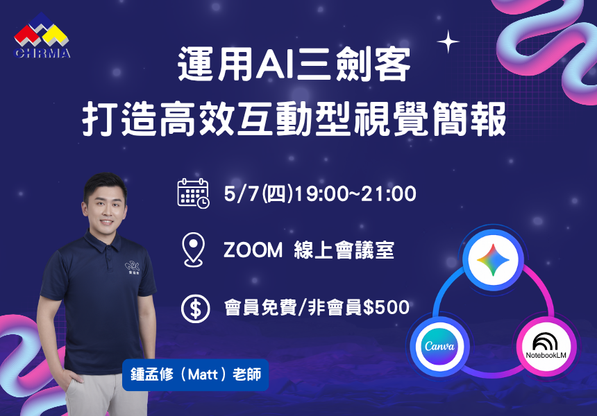 在資訊爆炸的時代,如何讓艱澀的簡報資訊「被看、被聽、被感受進去」?本活動將帶領學員掌握 AI 時代的簡報及活動工作流。從 NotebookLM 的深度資料消化|簡報修改製作、Gemini 的內容創意發想|視覺圖文呈現|互動型程式開發|紙本單張產出,到 Canva 的動態視覺呈現與即時互動功能,教你如何用 AI 縮短 80% 的製作時間,並創造出 200% 的聽眾互動感。