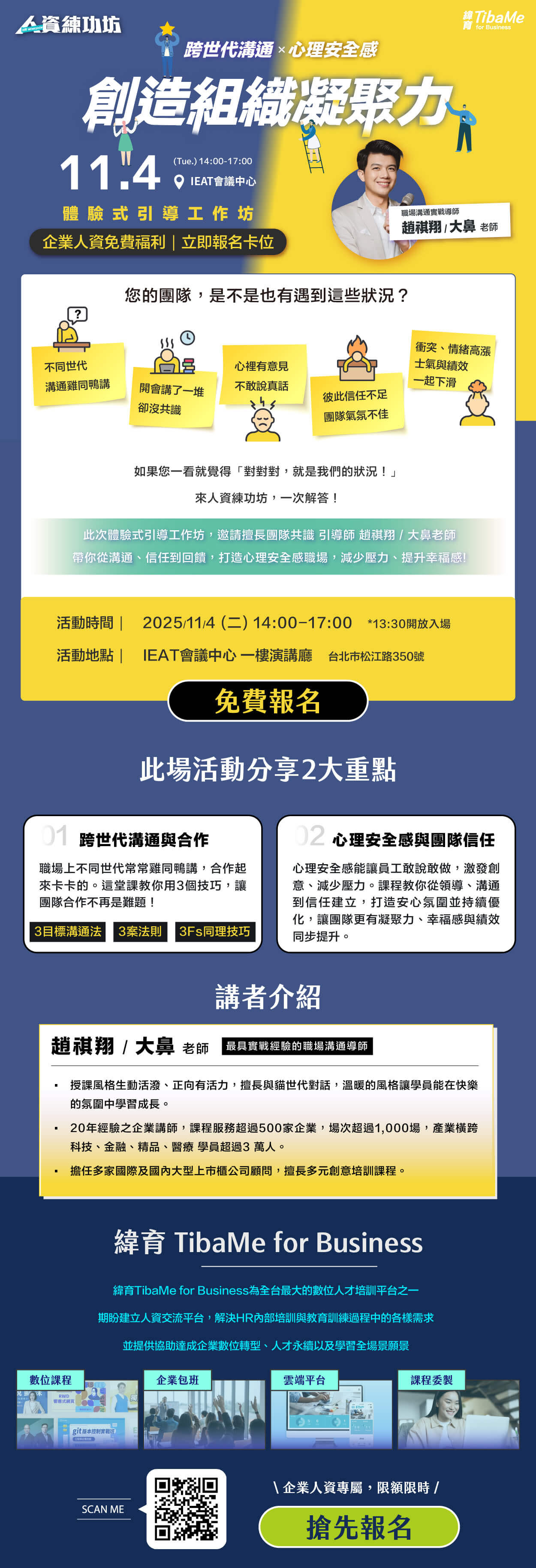 適合企業HR/培訓單位/部門主管參與,歡迎一起來練功吧!