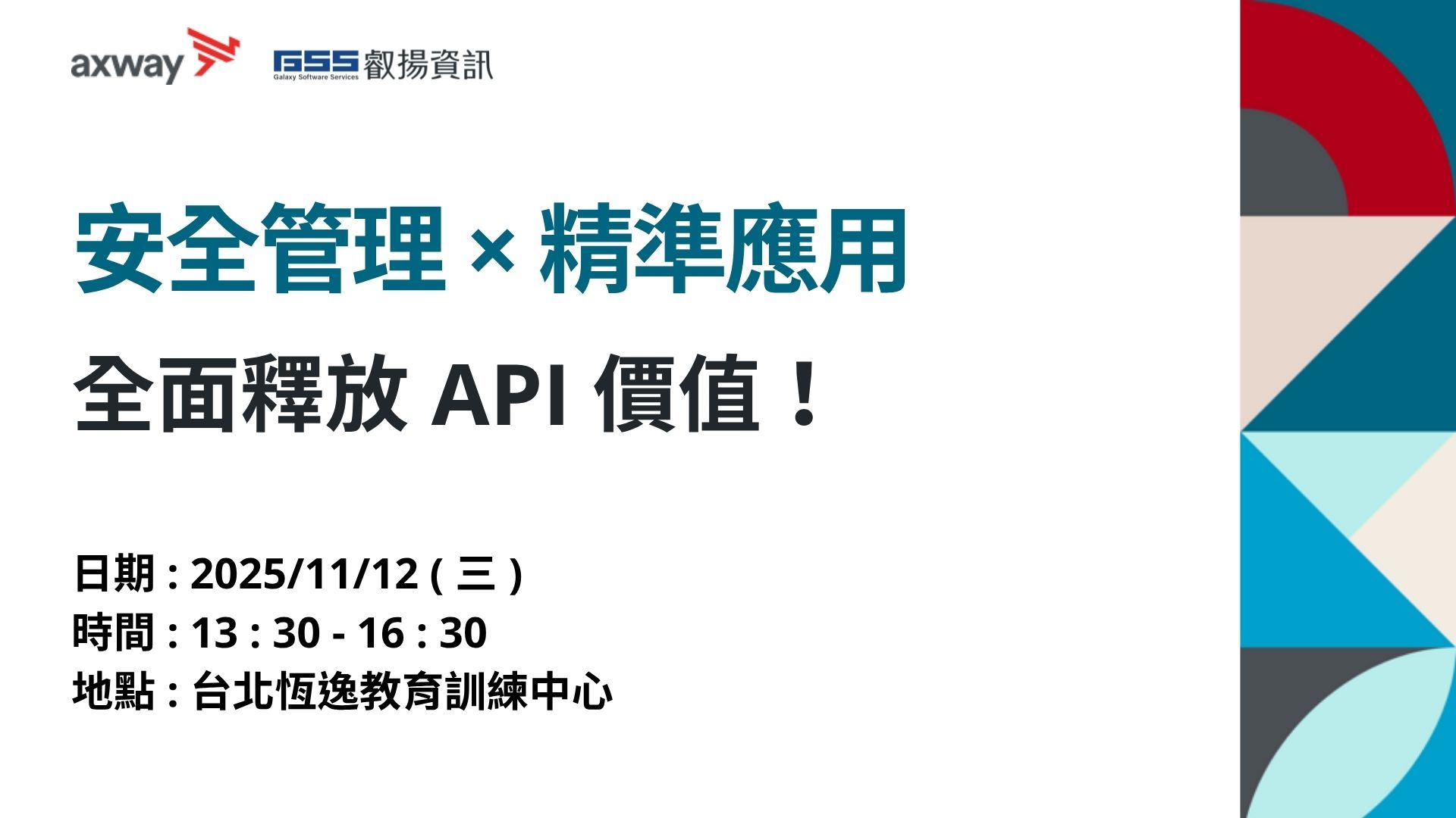 活動網址:訓練課程 - 2025/11/12 (三) 安全管理 × 精準應用 -全面釋放 API 價值!