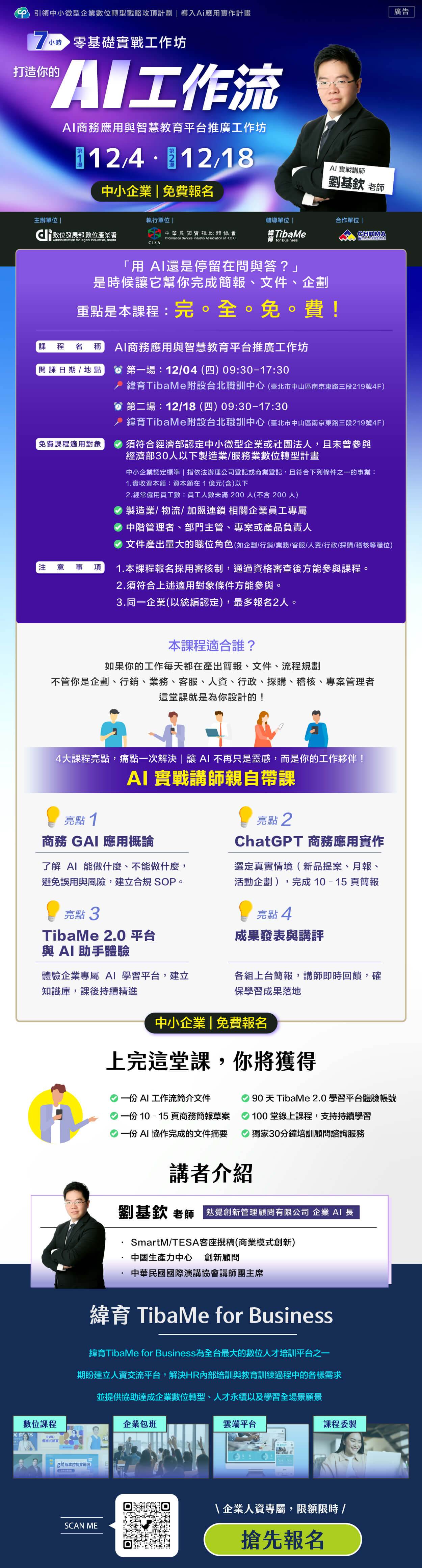 「想用 AI 真的加速你的工作,而不是只聽概念?這堂課 ‘完全免費’ 卻是實作滿滿。 立即點擊 CHRMA 專屬報名連結 https://www.surveycake.com/s/7G2L1,搶先卡位免費名額!